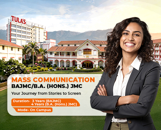 Built for individuals who want to move beyond consuming content to creating, expressing and storytelling. BAJMC/B.A. (Hons.) JMC at Tulas helps students develop creative confidence, communication skills and media awareness, preparing them to work across different media platforms and formats.