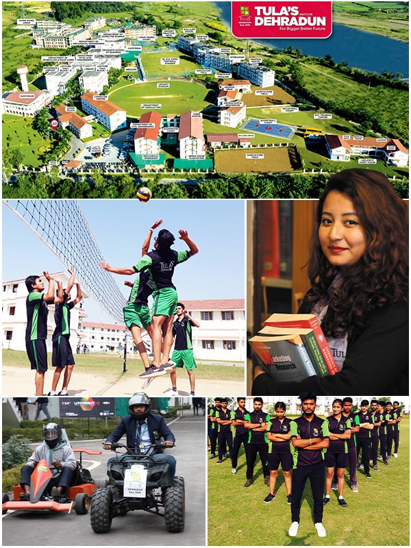 Tula’s Institute is spread in 22 acres of lush green campus in Dehradun having State-of-the-art facilities like auditorium, high-tech computer labs, world class library, play grounds, hostels, multi-cuisine cafeteria & fully wi-fi enabled campus