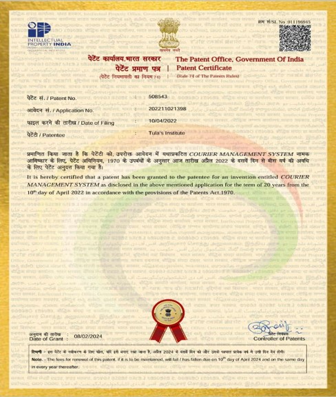 | 28 | 202211021398 | Granted | Dr. Sunil Semwal Piyush Dhuliya Dr. Tripuresh Joshi | 2022 | Courier Management System |